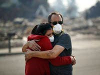 IMAGE: Howard Lasker, right, comforts his daughter, Gabrielle, who is visiting their home for the first time since a wildfire swept through it Sunday, Oct. 15, 2017, in Santa Rosa, Calif. With the winds dying down, fire officials said Sunday they have apparently "turned a corner" against the wildfires that have devastated California wine country and other parts of the state over the past week, and thousands of people got the all-clear to return home. CREDIT: Jae C. Hong / Associated Press