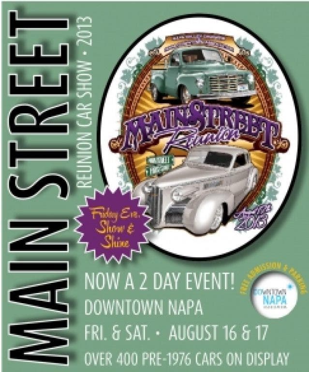 Rev your engines and join us for one of the Valley's best events. Main Street Reunion Car Show features 400 pre-1976 cars, all on display in Downtown Napa. The event is hosted by the Downtown Napa Association and the Napa Valley Cruisers Car Club. Parking and admission are free. Advance registration to show a car is $35; $40 after August 9th.