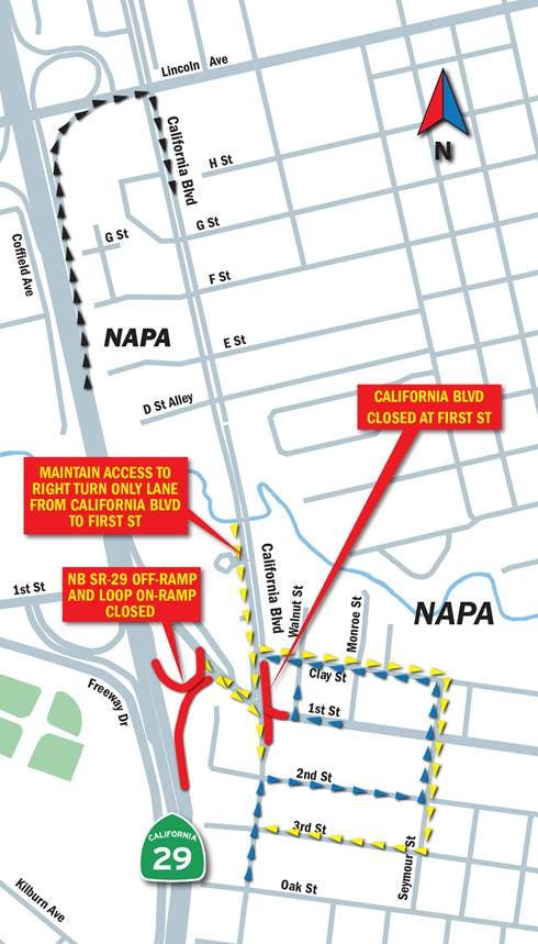 TRAFFIC ADVISORY: A detour will be in place while the northbound state Highway 29 First Street offramp is closed, according to Caltrans.