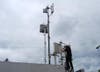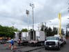 A Verizon crew was installing towers behind the main stage area to capture photos, video, text messages that fairgoers will be sending during the concerts with a relay tower set up near the nearby PG&E substation to then bounce the signal to the main switch for distribution.