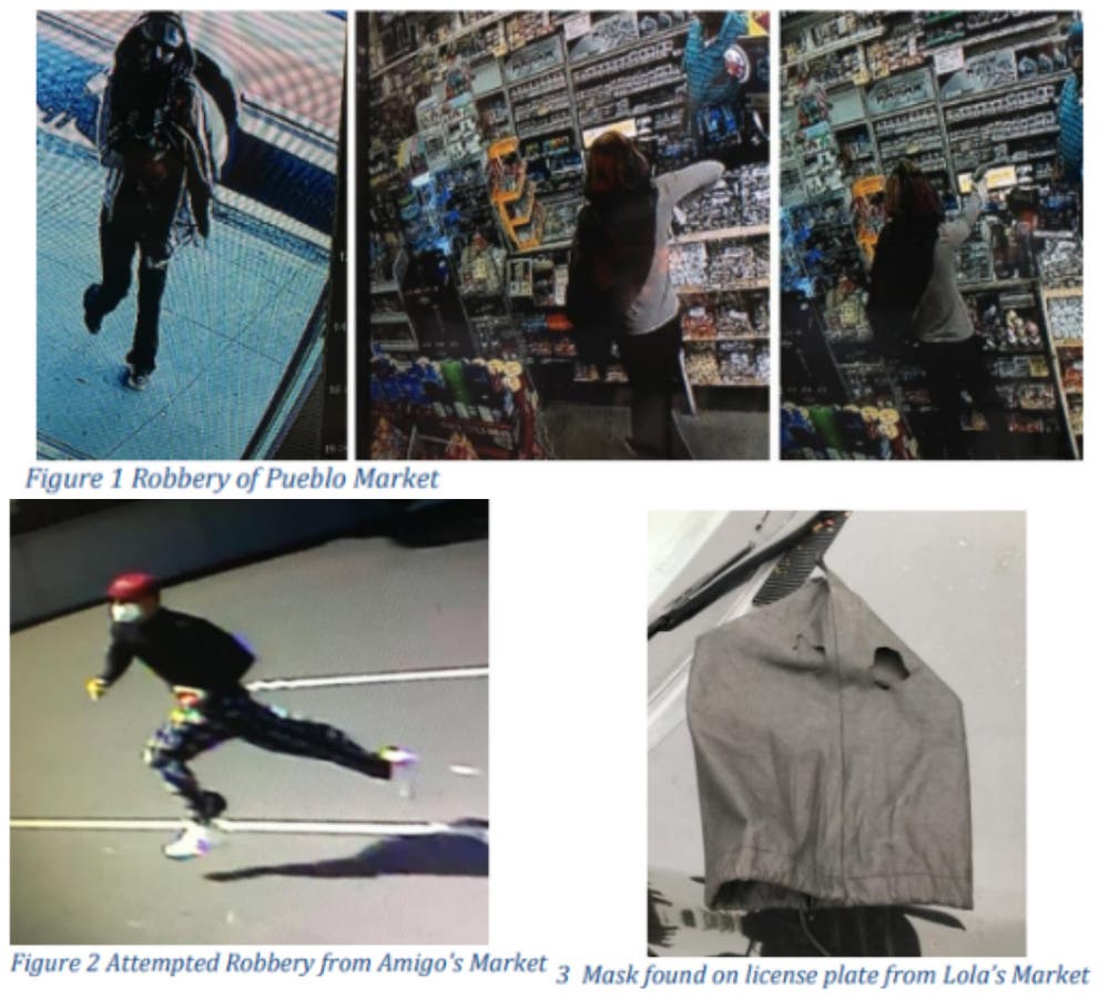 Through surveillance videos provided by both local residents and businesses in the area of Amigo’s Market, Napa Police Department detectives were able to identify a similar vehicle circling the area during the time of the robbery. The weapon in both crimes was a semiauto handgun.