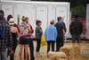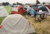 Some lined up to use the portable showers, others were kicking back, while others were just crawling out of their sleeping bags.