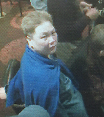 The suspect was described as an Asian woman, about 50 years old, 5 feet 5 inches tall, weighing 120 pounds, with short brown hair. She was wearing a blue sweater, a gray long sleeve shirt, gray jeans and gold shoes,