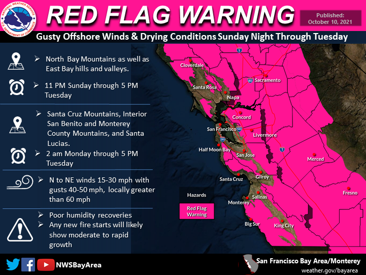 Electricity was shut off between 5 a.m. and 8 a.m. Monday amid a red flag warning, with service expected to be restored once high winds subside and equipment safety checks are completed.
