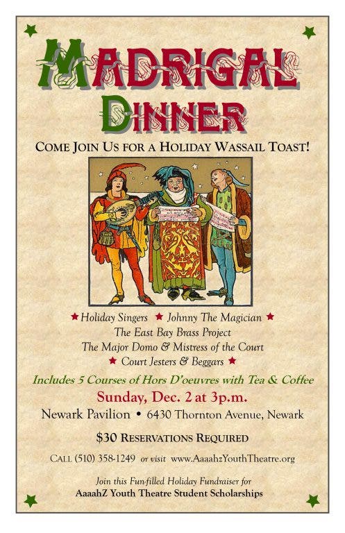 Come and join AaaahZ and our 16th Century Madrigal Dinner to celebrate the