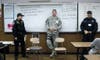 Inside an English classroom, Guzman highlighted local opportunities to learn more about law enforcement.
