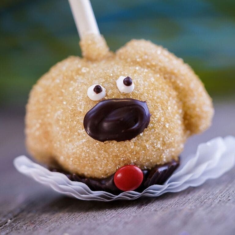 · Dug Cake Pop (Available starting June 23)– I have just met this chocolate cake pop, and I love this chocolate cake pop! It’s dipped in white chocolate, covered in gold sugar, and decorated with marshmallow ears, dark and white chocolate, and small round candy-coated chocolates.