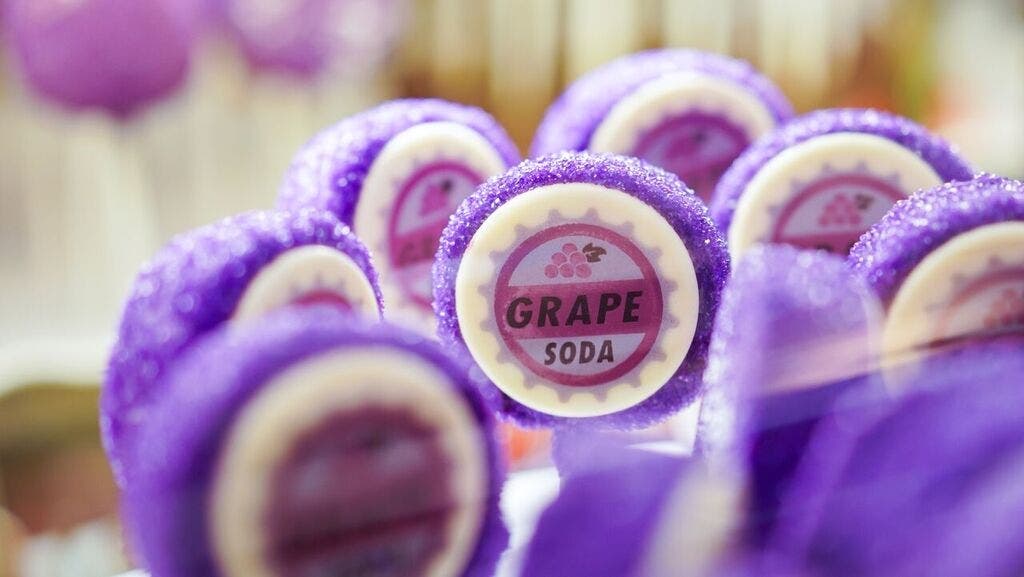 · Grape Soda Cake Pop – Inspired by Disney•Pixar’s film “Up,” this grape-flavored cake pop is dipped in white chocolate and covered in purple sugar.