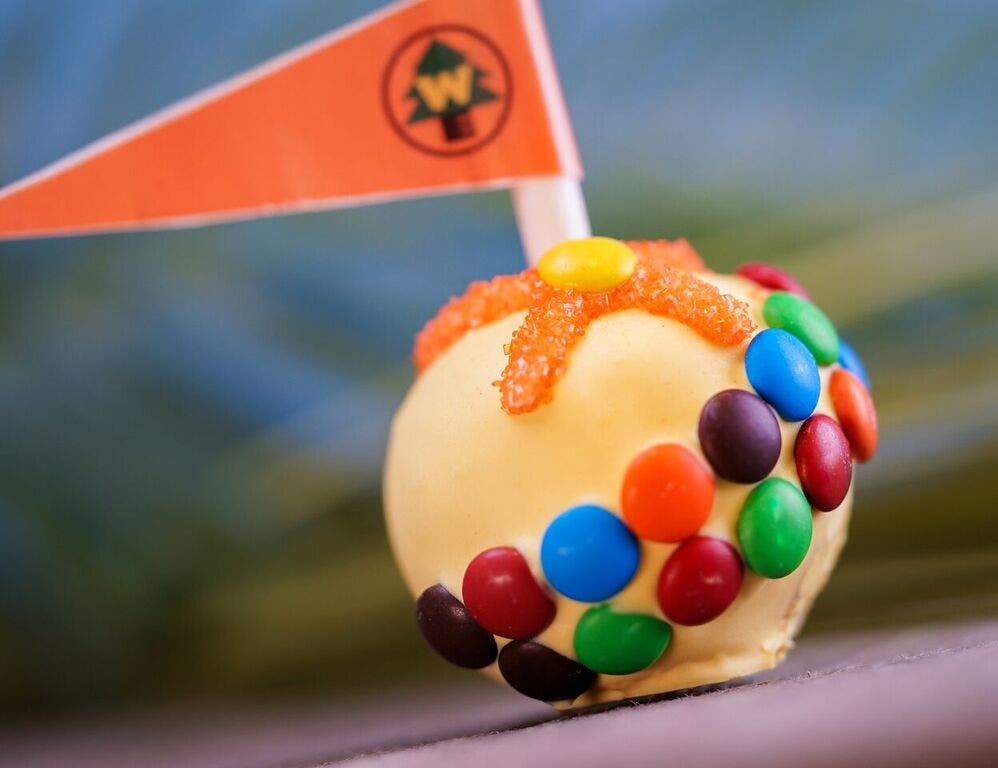 · Russell Cake Pop (Available starting June 23) – The candy must be explored! This chocolate cake pop is dipped in yellow chocolate and decorated with white chocolate, orange sugar, and small round candy-coated chocolates.