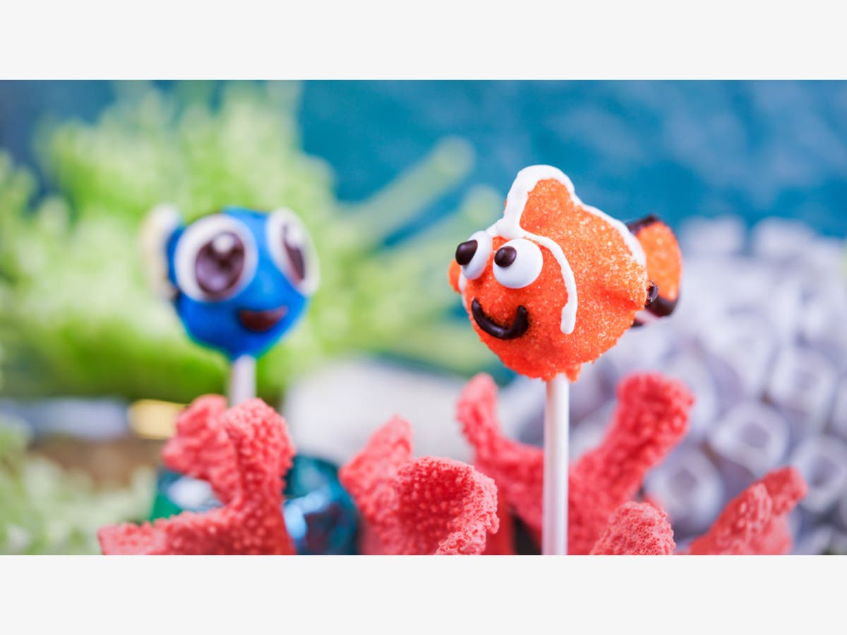 · Nemo Cake Pop – You won’t be a Mr. Grumpy Gills after eating this chocolate cake pop. It’s dipped in white chocolate and decorated with orange sugar, small round candy-coated chocolates, white and dark chocolate, and sour belts.