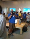 The store's interior is complete with a combination of large skylights, halogen lighting, large sales floor, the Genius Bar and designated tables for workshops and personal projects.