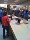 Hundreds of customers lined up early Saturday morning eager to see the newly relocated Apple Store at Fashion Island.