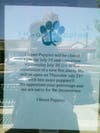 A sign on the window of I Heart Puppies says the store will be closed through Thursday in order to install a new fire alarm.