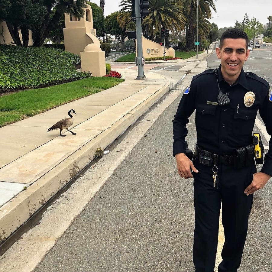 "He chased them down and whisked the mama goose and her babies to safety," Newport Beach Police spokesperson Jennifer Manzella told Patch. "This just proves he's got the good heart, good humor and what it takes to be a great public servant."