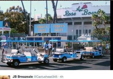 “They contacted the driver who was the sole occupant. The golf cart had Rose Bowl stickers on the side of it. The driver admitted to taking the golf cart from the Rose Bowl,” according to a CHP statement.