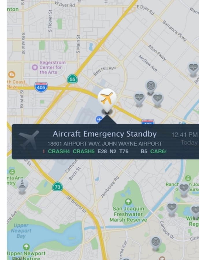 An Orange County Fire Authority spokesperson stated that an emergency response was made at approximately 12:45 p.m. as firefighters were sent to John Wayne Airport for what was thought to be a commercial plane made an emergency landing due to engine trouble.