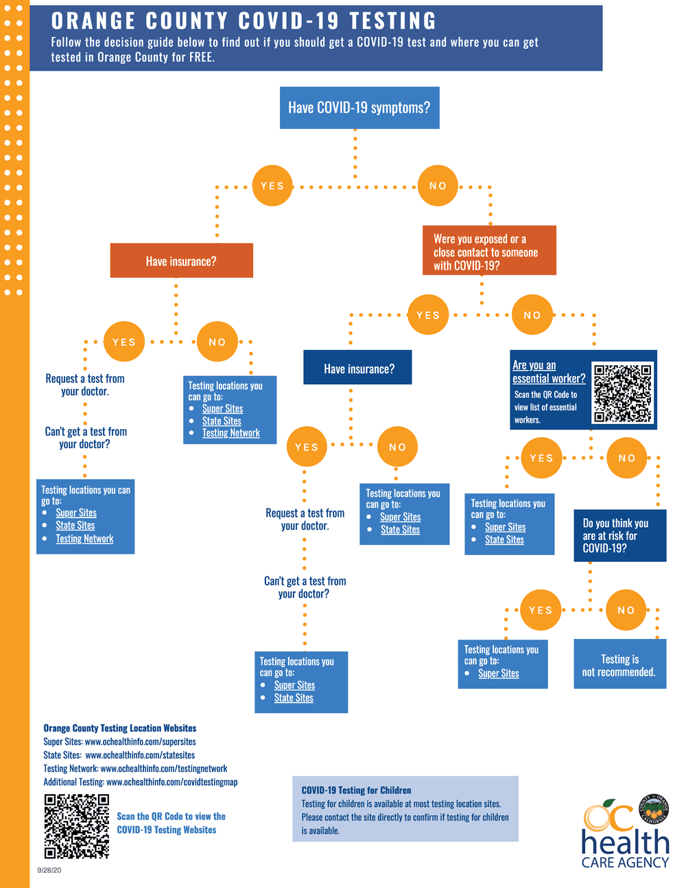 “The County’s at-home saliva-based COVID-19 test kits are now available to all individuals that live in Orange County – regardless of their ability to pay or their legal resident status,” said Vice Chairman Andrew Do, First District. “The OC Health Care Agency and our healthcare provider partners have stood up a robust system of in-person, drive-through, and at-home testing to ensure residents have access to testing as we try to slow the spread of the COVID-19 virus.”