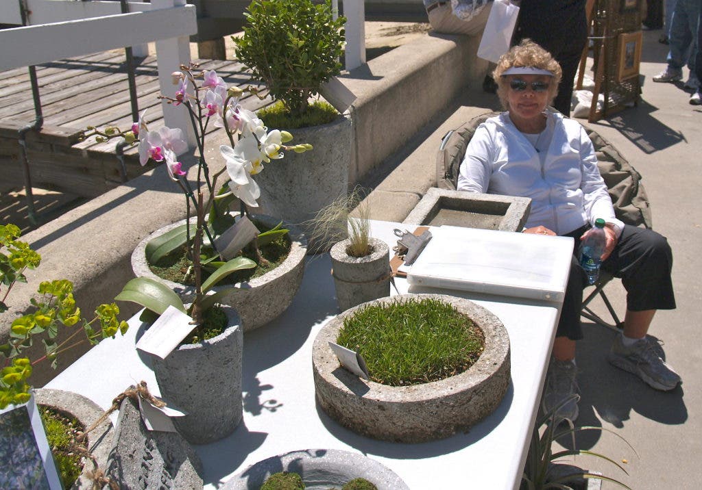 In her debut at the earlier this month, Larsen sold hypertufa pots, which are planters made from a substitute for tufa rock. A lighter-weight alternative to traditional stone and concrete planters, hypertufa pots are created from a mixture of perlite, peat moss and Portland cement.