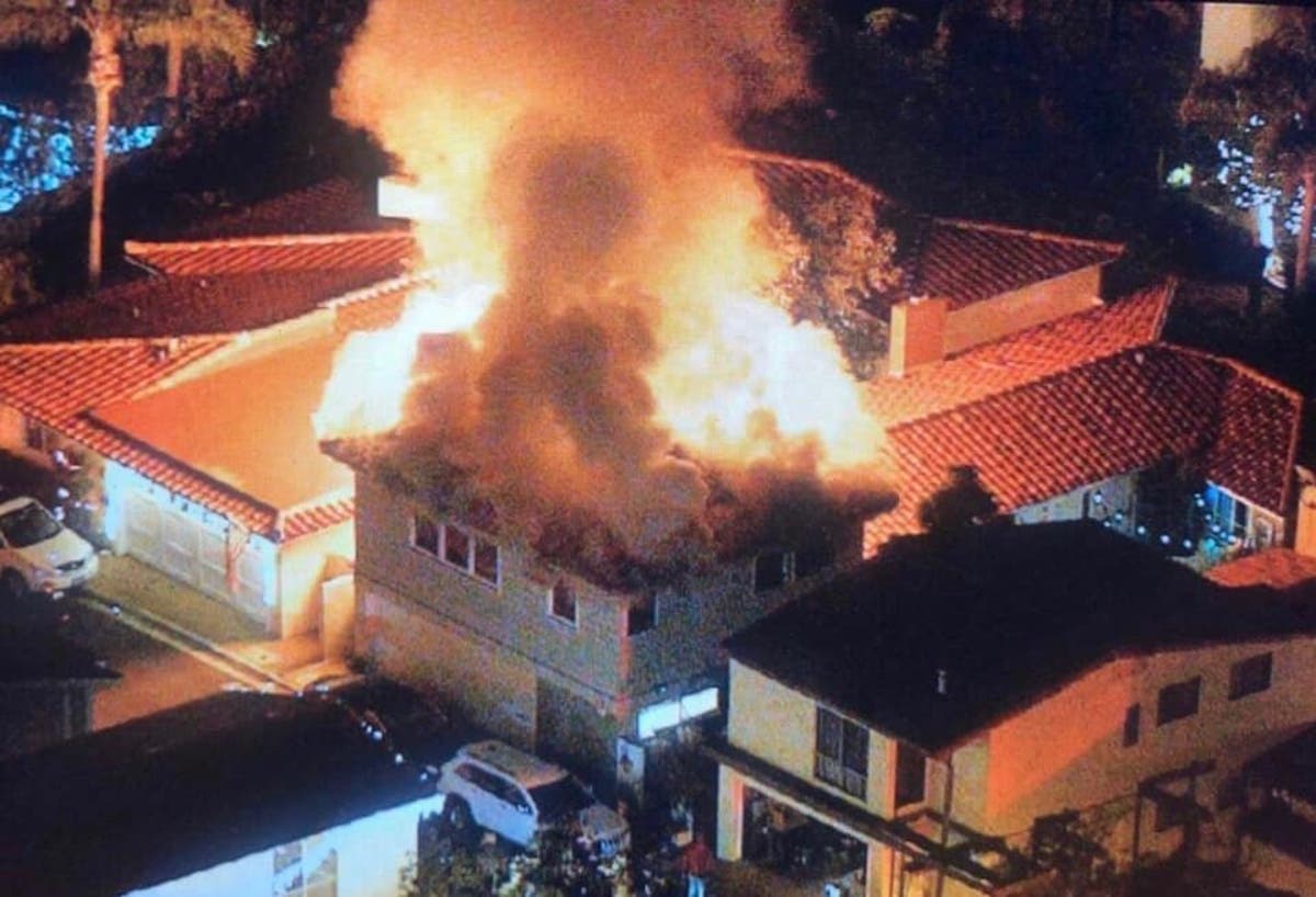 Flames fully engulfed the second floor of the home upon the first responder's arrival. Costa Mesa and Huntington Beach Fire Departments assisted with the knockdown, which was extinguished by 7:15 p.m.