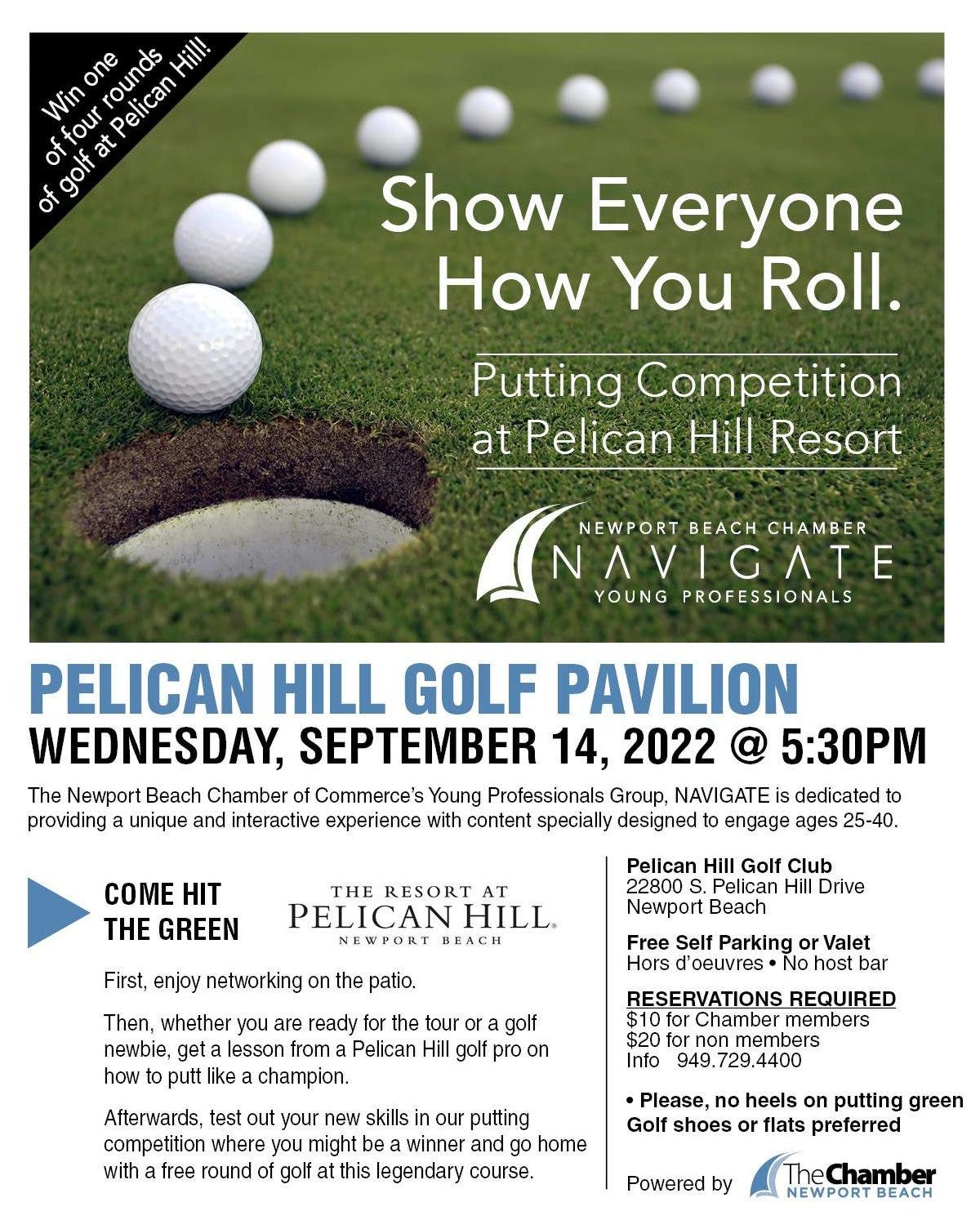 NEWPORT BEACH, CA — The Newport Beach Chamber of Commerce and their Navigate Young Professionals organization recently announced a putting competition at the Resort at Pelican Hill on Sept. 14.
