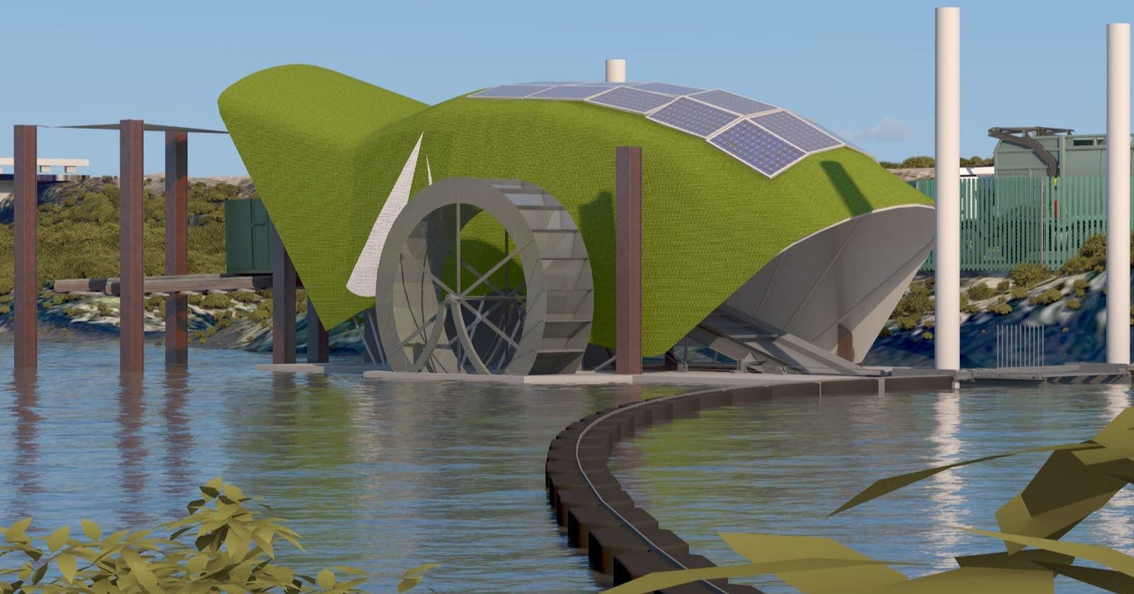 "The Trash Interceptor, modeled after a similar project in the Baltimore Harbor, will sit on a floating platform that rises and falls with the tide. The platform will be secured to the creek bottom by guide piles. The platform will hold a 14-foot wheel that spins using power from the river current or solar panels to move a conveyor belt," the release stated.