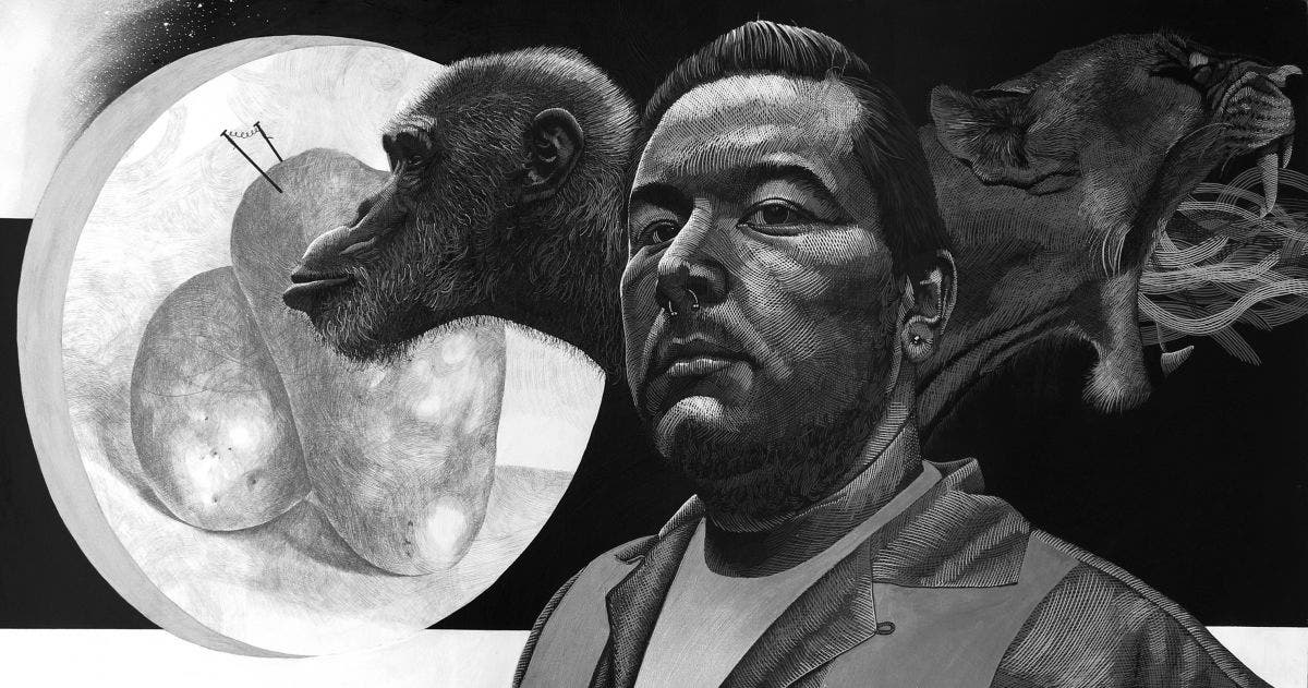 “[Alejandre’s] symbolic portraits reveal both the power and vulnerability of the common man,” says Doyle Arts Pavilion Director Steve Radosevich. “His work explores themes of identity conflict, expectation and personal evolution. His masterful use of line, reminiscent of classical etchings, accentuates the brave assertiveness of his subjects.”