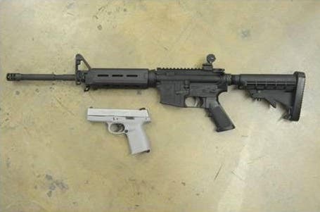 Officers searched the car and found a loaded handgun on the floorboard and an unloaded assault rifle in the trunk along with multiple items of stolen property, Jennifer Manzella, a spokeswoman for the Newport Beach Police Department said in a written release.
