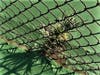 One lonely little plant/tree slurred and painted over on the newly redone tennis court.