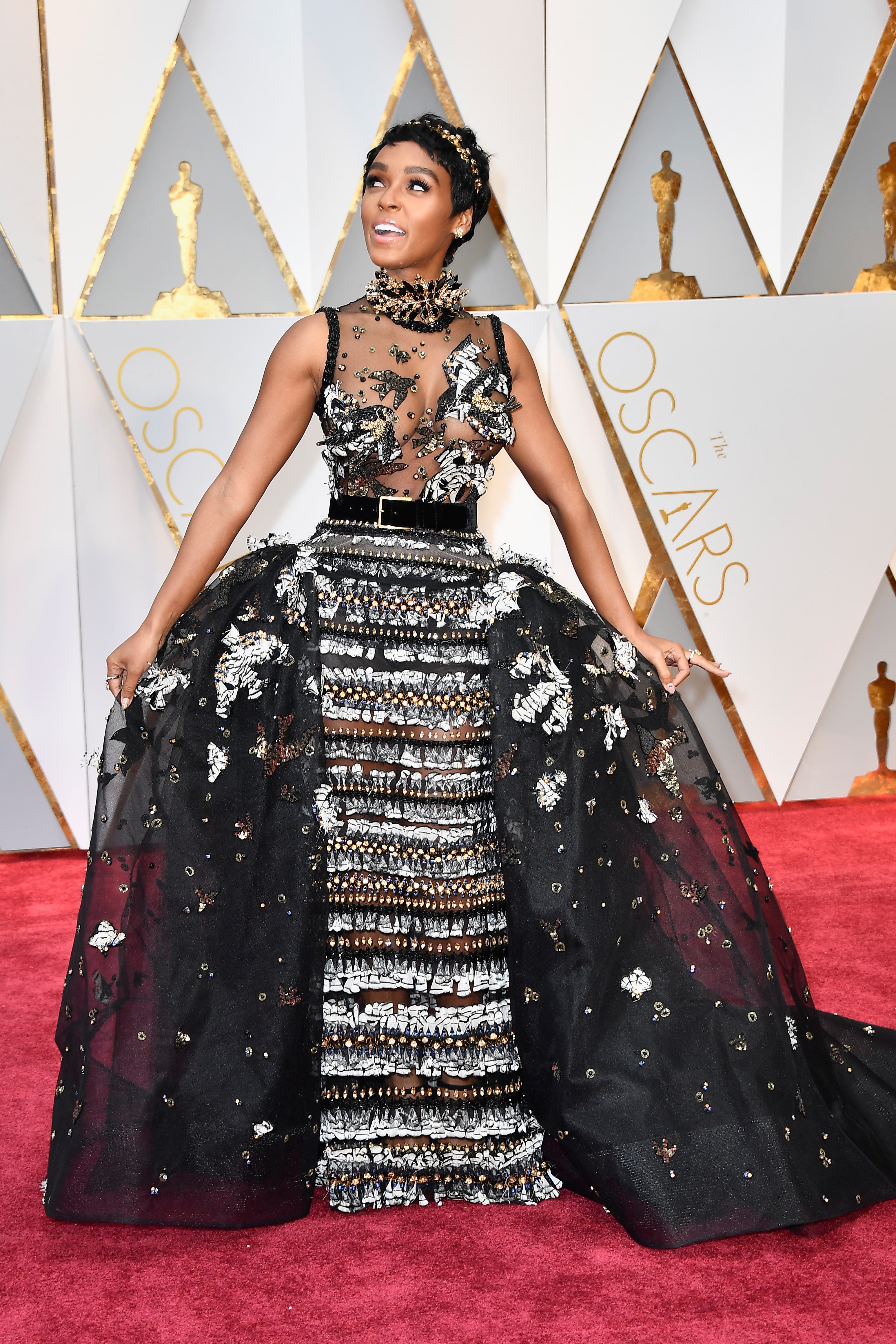 Possibly the biggest red carpet risk-taker of the 89th Academy Awards was actress and singer Janelle Monae, who went way, way back to a bygone era, bringing back the bustle (imagine trying to squeeze that into Dolby Theatre seat).