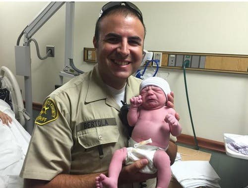 A motorist shouted, “Baby! Baby!” at Deputy Roger Bertola, who followed the car into a Canyon Country parking lot on Soledad Canyon Road and soon realized the mother was in labor.