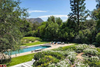 The property also includes an outdoor pool, glass-enclosed indoor pool and spa, along with a rose garden, lawns and a motor court. There is a two- bedroom, two-bath pool house and a 4,000-square-foot production office/guest house.
