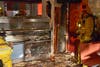 Marquis pointed out the affected area; there was a mangled grease filter located underneath the deep fryers; and where drywall originally hid aluminum venting, the firefighters had busted it away to gain access to the flames.