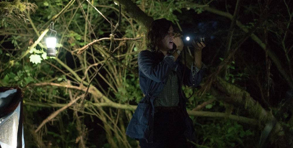 The story involves James, who believes his sister Heather (the protaganist from the original film) is still alive in The Black Hills Forest in Maryland, that she somehow survived her encounter with The Blair Witch. He gathers a group of friends (and two strangers who supposedly previously found said found footage) to venture back into the woods to learn if there’s any hope in finding Heather alive. The conceit is that James’ friend Lisa is going to document the whole trip, so the team outfits themselves with body cameras, handhelds and even a drone copter. Quickly the footage seems less found than “put together” by someone to make it scary, including the dense sound effects that there’s no way the consumer cameras are going to capture at such decibals (and, again, who would do that? And who would go back into the woods AGAIN to get this footage, especially when it’s revealed the dangerous places this footage ends up? And some footage is still in the cameras on characters who are dragged into the night, never to be seen again, except, apparently, by the people looking to find their footage).