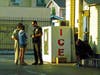 Several minutes later, another vehicle arrived on the scene and parked near the dairy store and three people exited. One of the patrol officers quickly engaged with the group, and requested that one of them, a man that looks to be in his 20s, to step aside and talk to the officer. The others, an older man that looks to be related (possibly the father), and a young woman (who looks to be his sister), are directed to stand off in another area of the dairy store property.