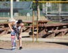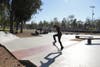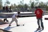 Near the back of the park, the younger athletes are gathered in the skate park. Young children and high schoolers practice tricks and flips. A couple of parents watch hesitantly. It's a safe, yet unsupervised spot for skateboarders to build their skills and meet new friends.