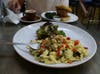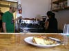 I decide on their garden scramble (kale, mushrooms, onions, red peppers, avocado and goat cheese) and a mocha, and my husband supplements his soul food breakfast with an espresso. Except for an occasional “mmm” of approval, we both eat in silence as our utensils clank against our plates – a sign that our food is too delicious to take a breather (kudos to head chef Guy Weiner).