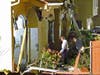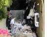 Police use a "bat cat' to tear off a wall of the man's house.