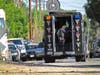 Albanese explained the use of the remote-controlled, giant "Bat Cat,'' a kind of hydraulic forklift and crane which has cameras mounted on it and was being used as a kind of battering ram. It also picked up and moved a vehicle that was in the way of the device.