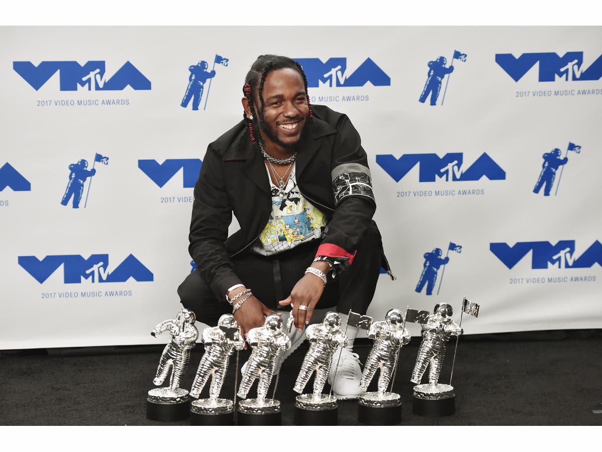 The Compton-born Lamar's hit video "Humble" raked in six awards -- video of the year, best hip hop, best cinematography, best direction, best visual effects and best cinematography.
