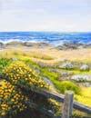 Second Place artist, Michelle McGrath, is a painter from Simi Valley, who enjoys painting California landscapes and florals in both oil and watercolor. In the Depot Window Display, Michelle is showing two seascape watercolors, “Calm Coast” and “Peaceful Ending.” One of her seaside oil paintings is also pictured to the right.