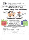 This Saturday's world premiere of **it Kickin’ Country Goes to Broadway … With a Coupla Hot Chicks is another '50s and '60s musical revue conceived, produced and directed by Patrick Hart. The show features classic and newer well-loved country tunes blended with musical selections from Broadway’s Spamalot, Chicago, The Sound of Music and Cabaret, among others.