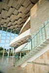 By intermission, I was wondering about the acoustics of the hall, and its undulating beige wood ribbons. I was sitting in the very back of the second section, “parterre,” and there was a definite drop-off in volume and clarity that I suspect is not the case in the front of parterre, or the orchestra section. There was nothing of the surround-sound envelopment of the acoustically freakish Disney Hall, where timpani make your chest cavity vibrate and Bruckner can make you plug your ears---but you wouldn’t expect that. This was a “sound-is-in-front-of-you” experience, no way around it, yet the sound was very... mono. I did not get much separation or discretion of tone colors, with woodwinds often swallowed by strings and timpani not really punching through.