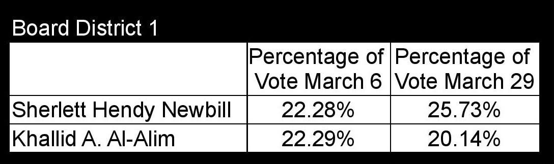 In the initial March 5th election results, it looked like both candidates would escape accountability for their actions. The results from those who had voted early and uncontested in-person votes showed Al-Alim and Ortiz in the lead. However, neither was near the 50% + 1 they needed to avoid a runoff.