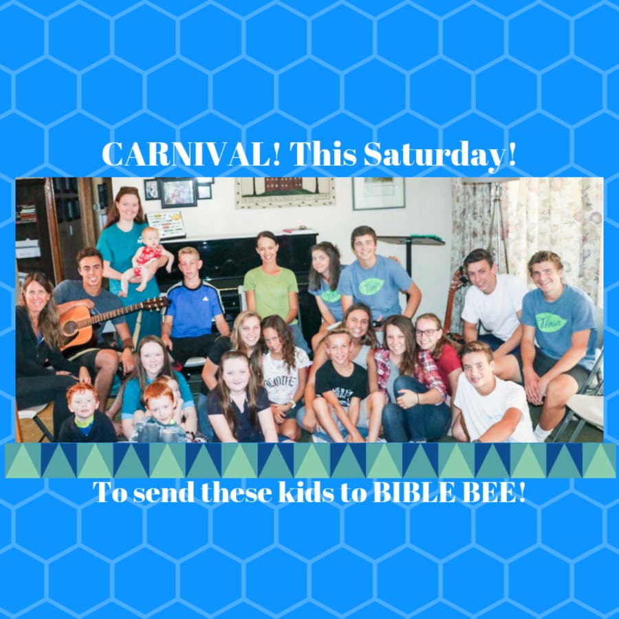 Proceeds from the carnival will be used to help send qualified local students and their families to the NATIONAL BIBLE BEE in San Antonio Texas.
