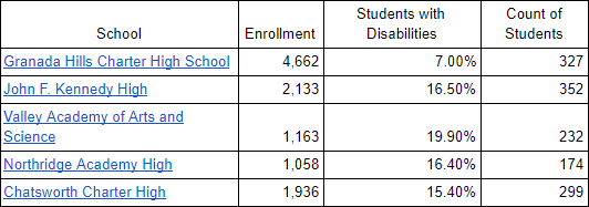 Compare these actions to Marilyn Koziatek’s record. Since Koziatek did not reply to questions that were sent to her, including ones about special education, we do not know her personal views on the subject. However, since she is running based on her work at Granada Hills Charter school, we can look at their record with special education. While Granada is supposed to be a neighborhood school, its percentage of students with disabilities is less than half of any of its neighboring schools. Students with the most severe disabilities are fenced off from the rest of the student population. The school has illegally assigned students with disabilities to their independent study program against the wishes of their parents. Its online application form violates its charter by asking for a copy of a student’s IEP. When the LA School Report ran an article on enrollment discrimination, Koziatek herself refused to comment, agreeing with her CCSA handlers to present this as a “non-story.”