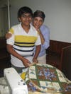 So Usha began sewing cotton quilts, and is now making a small blanket with her son.