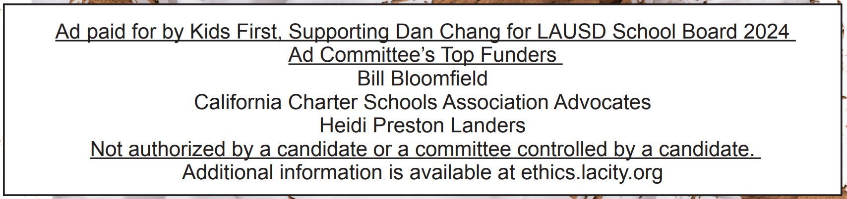 As a voter in LAUSD BD3, this accusation seemed strange to me. My mailbox has been flooded with flyers and I have been frustrated by the lack of attacks from Scott against Dan and his history of trying to privatize our public schools. To confirm, I checked the records on the Los Angeles City Ethics Commission’s website and found that most of Scott’s communications focused on his decades-long career as an educator, including being a teacher, counselor, and principal in the LAUSD.