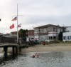 Liam is a member of the Rolling Hills Stingrays swim team and decided to follow in the footsteps — er, wake — of his mother, open-water swimmer Kathryn Filley Brown. He jumped it at about 6:45 a.m. and was directed by South End Rowing Club’s Bob Roper.