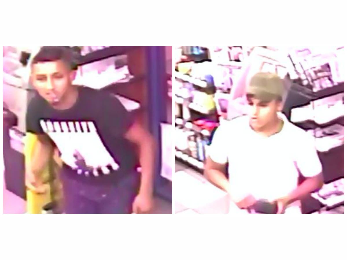 The first suspect was about 5 feet 5 inches tall, 120 pounds with a skinny build. He had short black hair and no facial hair. He was wearing a dark T-shirt, shorts, white tennis shoes and a backward baseball cap.