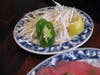 The usual rich beef pho broth, on a recent visit, was weak and had pools of fat floating on top. The brisket was tough and the some of the elements of the inclusions: bean sprouts, jalapeño, lemon and the missing sprigs of cilantro. I usually order it with sliced raw eye of round, which is cooked in the broth.